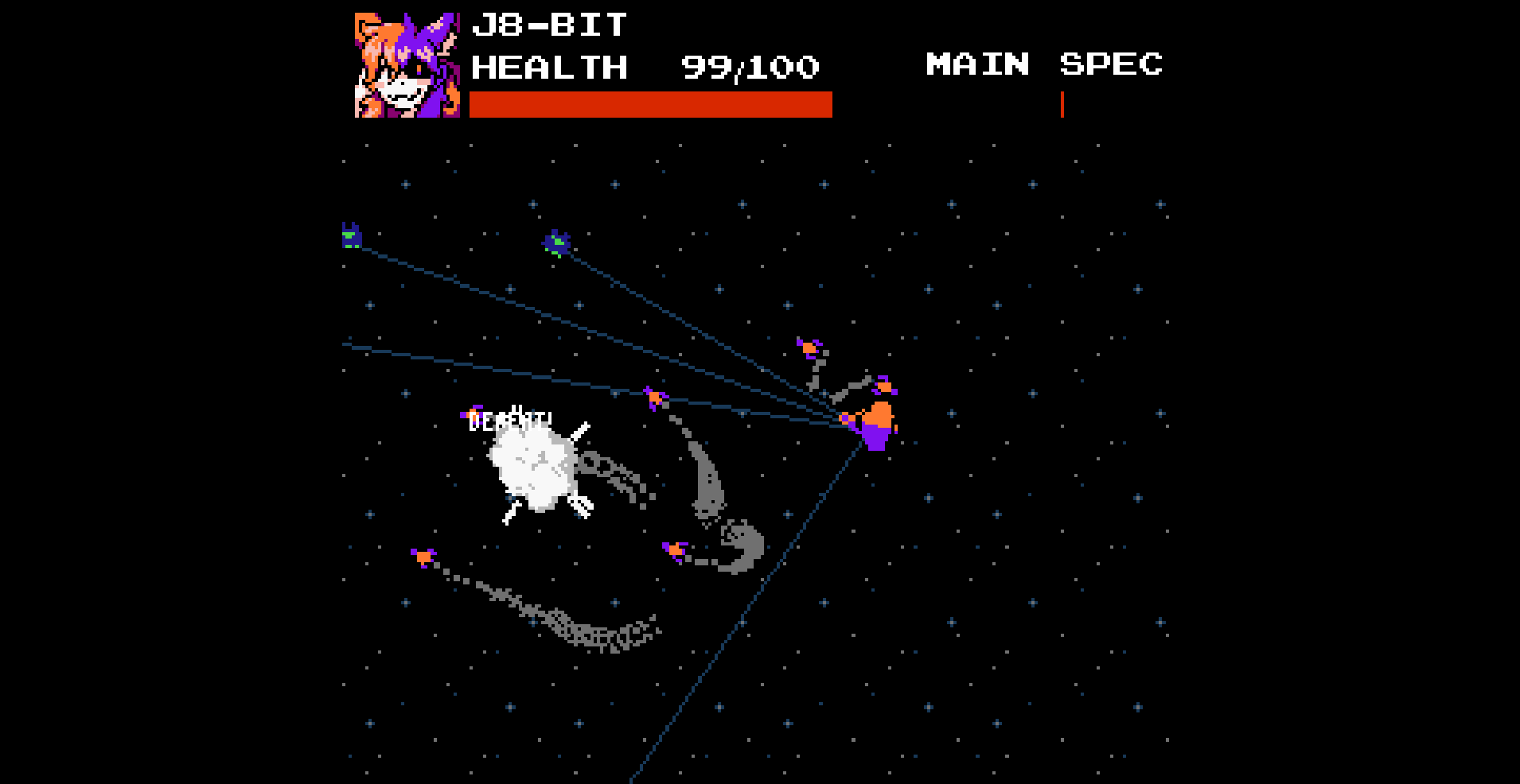 While creating the functionality for the player’s ability to shoot bullets, I came up with a generic “emitter” object that could be used to summon both game objects and graphical effects with ease. Modeled similarly to how particle systems are structured, emitters handle attributes such as initial angle and speed and their variance, burst firing and delay options, whether or not the starting angle is relative to its parent’s angle, and the scene itself to instantiate. These settings can also be changed on-the-fly (as seen with player swapping) and can contribute to advanced projectile and enemy behavior.
